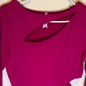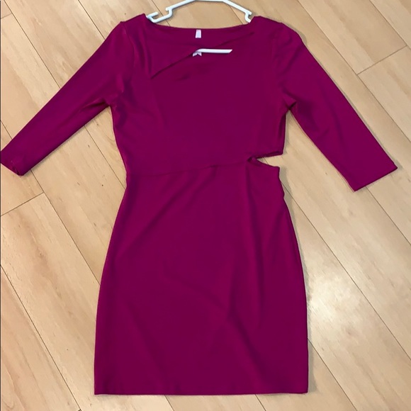 JustFab fuchsia color dress with peek-a-boo opening at chest and left side. Quarter length sleeves. Size small. Worn once.