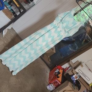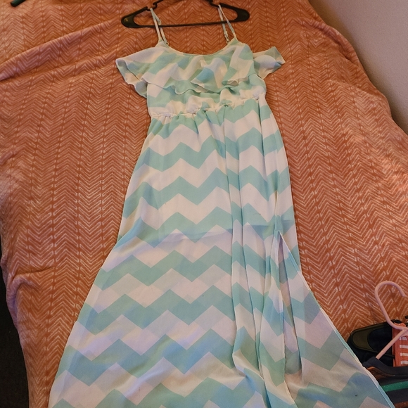 Turquoise chevron maxi dress with a slit at up the leg gently used