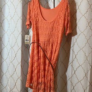 Lacey tangerine dressy dress with lower back scooped neck. NWT. Comes with belt.