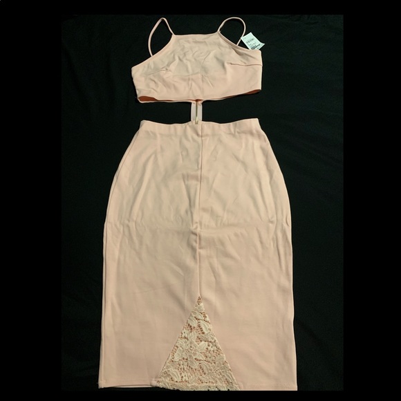 This dress is brand new, never worn. Really cute, pastel pink in color, connected two-piece.