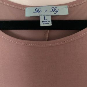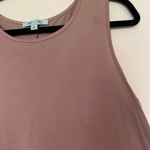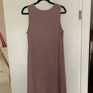 High low dress. Knotted on one side (can be taken out). Has a few little stains as shown in picture but not very noticeable while wearing. Super soft buttery texture!