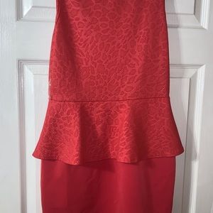It’s a red coral mini dress with a ruffle going around the waist line suitable party or special occasion events depending on how you like the length of dress to be.