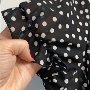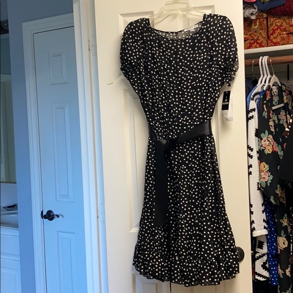 Never worn with tags - washable, chiffon with poly slip tank dress underneath, elastic rimmed cap sleeves