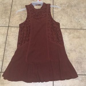 Lightly used maroon dress with lace detail. Has a v in the back, it is perfect for fall.