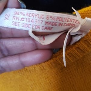 Gold colored, fall dress with wide brown belt. This dress is 33 inches from shoulder to hem. This may be considered a mini dress. Extremely comfortable, wears well with tights. Small imperfection in back, barely noticeable. See rear photo. Will except offer.