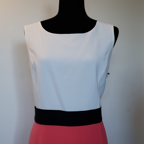 Nearly new, worn once.. White and pink, sleveless, dress for success. Small tear in lining, can be mended with needle and thread.