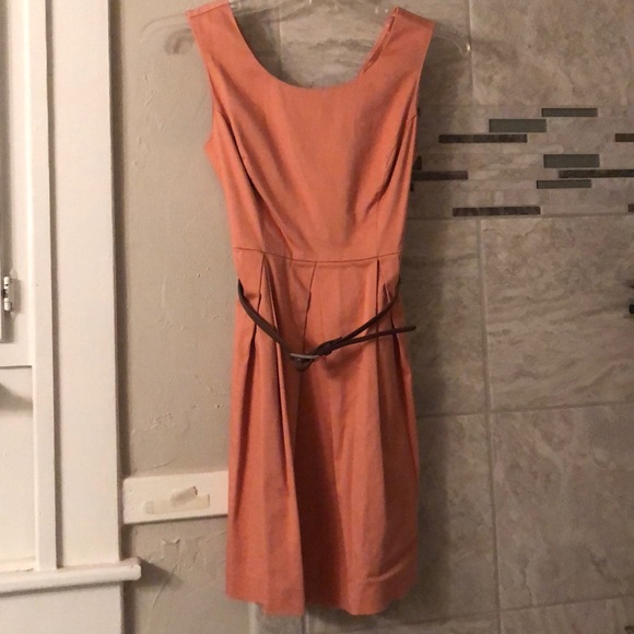 Peach-coral color dress. Pleated, tank top. Mid to lower thigh (5’4”). Worn 2x.