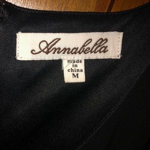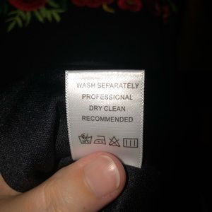 Super cute, fun and flirty Black dress with flowered waist. Polyester. Measures 36 inches from shoulder to hem and 17 inches pit to pit