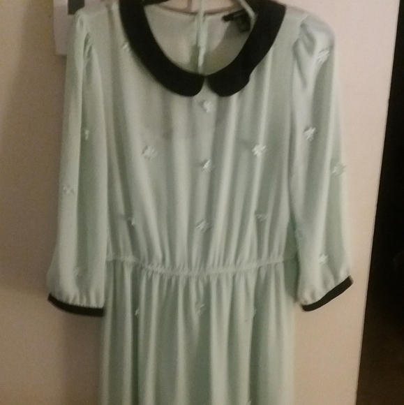Light green and black collared dress with tiny flowers. If you purchase the dress you get the shoes that are matching for free the heel arena size 7