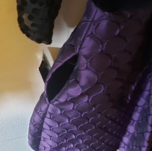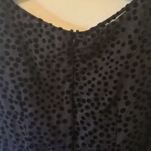 ❣Beautiful black and aubergine, fit and flare cocktail dress. Top is sheer with cami connected to it. Pockets on dress.