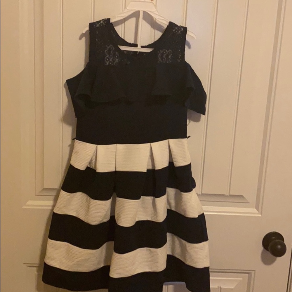 Navy blue and white horizontal stripe dress