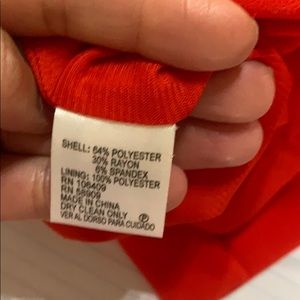 Cocktail dress. Orange stretch. Sleeveless. Shoulder to hemline 34 1/2’