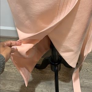 Blush sleeveless dress with halter neck snd back zipper and hooks closure. Removable belt