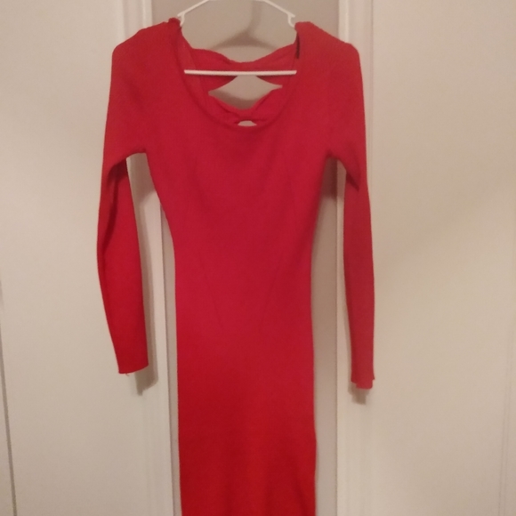 Red fitted sweater dress
