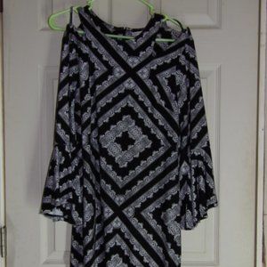 Cato Black & White dress. Looks so cute on. Has bell cuffs. Wore one time to a New Years party. I had so many compliments on this dress it was crazy. Any questions just ask