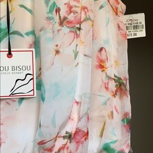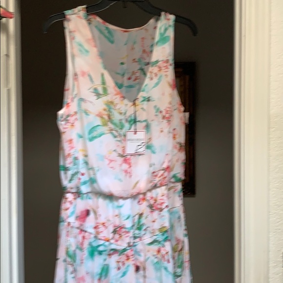 V-neck dress with the white slip under it light in thin comes down in a V at the bottom