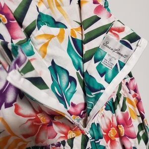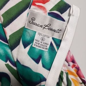 Vintage 1980s Tropical Print Halter Dress. 100% Cotton. Excellent Condition. No Rips, Tears, Stains. Side Boning for Support.