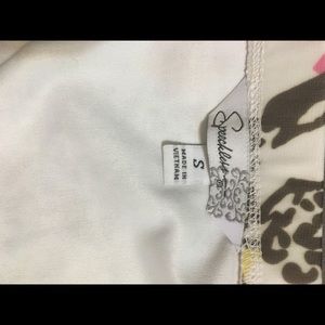 Beautiful spring time dress. Bottom flows. And ties in the back. Bottom of dress is up and down. And has padding in the top. Never worn.!!