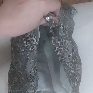 Its lacy qns had sequins. The lace is only on outside the slip is made all the way up . my baby does not like lace.its a greyish kinda lepord print at same time