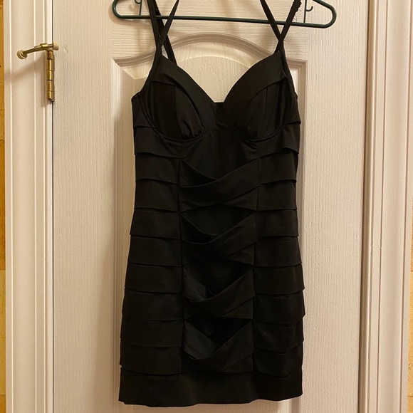 Little black dress very form fitting with black strap details