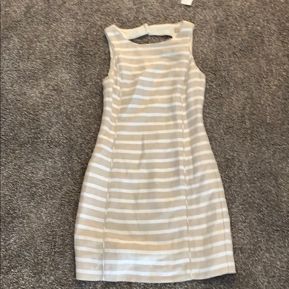 Tan and white sleeveless dress
