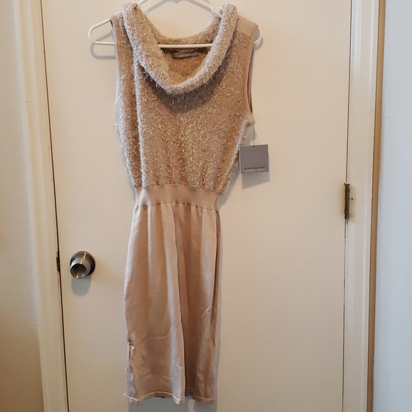 Sweater knit, knee length, sleeveless dress. Sexy and elegant with a little sparkle thru out. Has a nice stretch to hug you in all the right places while allowing for a comfortable fit. Great for a special moment to remember.
