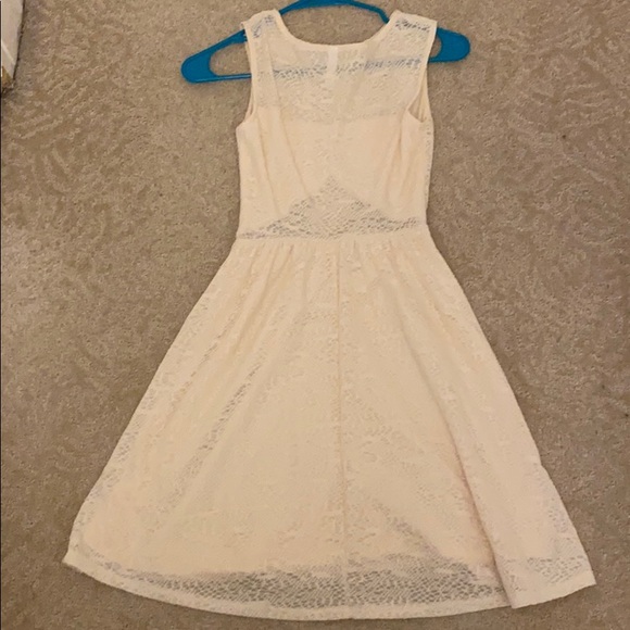 Cute cream colored dress with lace embroidery. Light and cute for any occasion! Very flattering!