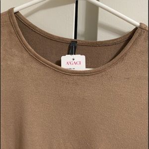 Never used, tag still on, Size Medium, velvet material, color camel, sleeves are not too long