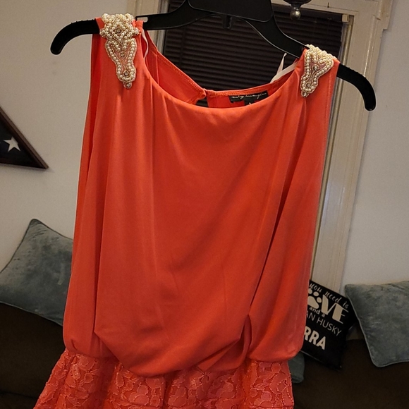 Coral dress, above knee, never worn, size S