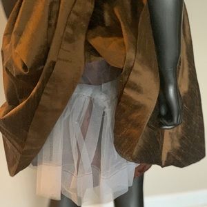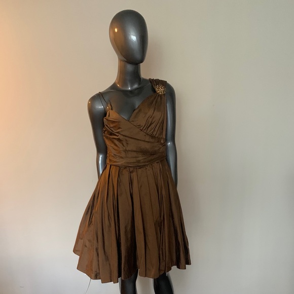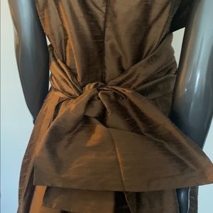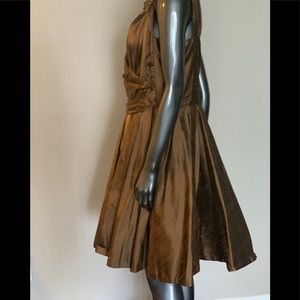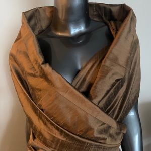 Gorgeous cocktail dress with long scarf that can be wrapped in many different style, zipper in back. Dress was Custom made this dress always get a lot of positive attention the dress was gentle wear two times. Knee length fits 8 to size 10