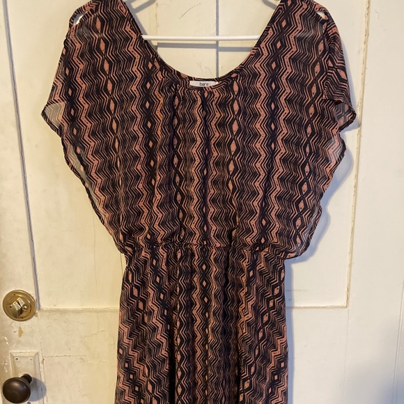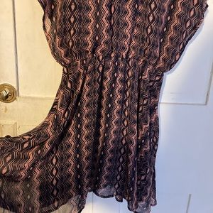 Such a pretty dress, in great condition, goes right above the knees, and a little see through but has a base underneath.