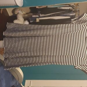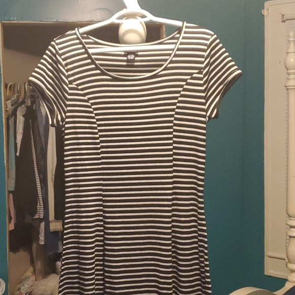This dress is a very simple black and white striped dress that is in the style of a T-shirt dress