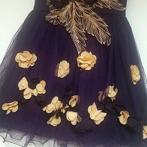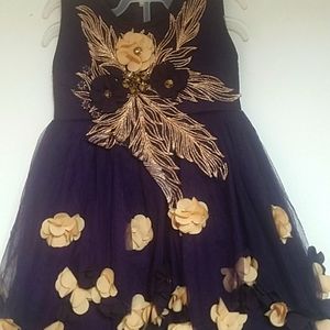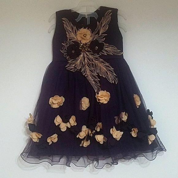 Toddler girl dress purple and gold 9 shoulder 11 chest 23 long