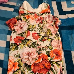 Has flowers, Short, sexy, body on Dress, off the shoulder, v cut on left leg