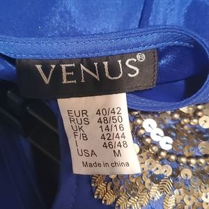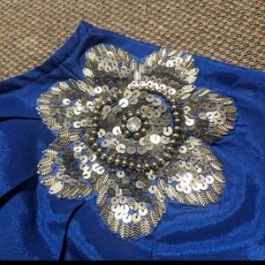 Blue Asymmetrical Shoulder Dress w Silver Sequin Detail