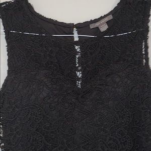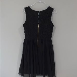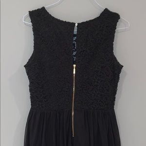 Black dress with a lace top and tulle bottom. Gold back zipper. Sleeveless. Worn once.