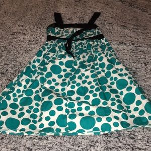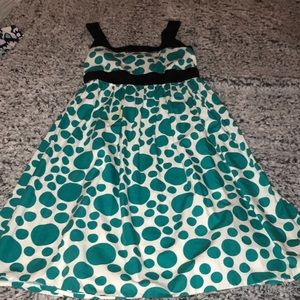 White dress with teal polka dots. Shipping is at buyers expense!!! ALL BUSINESS IS THROUGH POSHMARK!!!