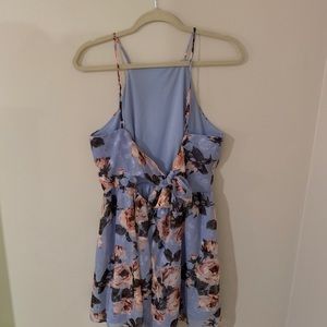Light Blue Cocktail Dress With Floral Pattern and Tie in Back