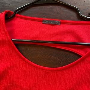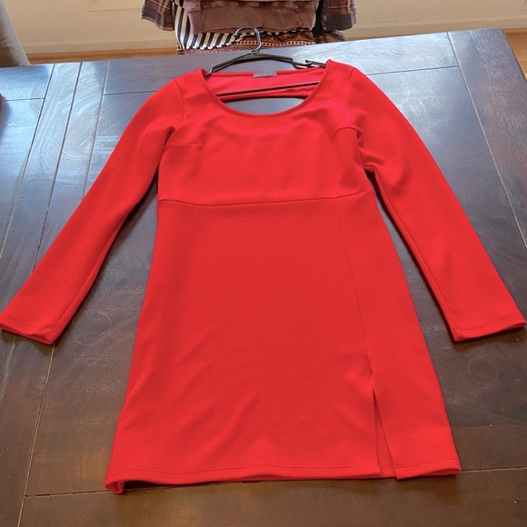 Long sleeved, red body-con dress with cute slit in front and cool back cut out!