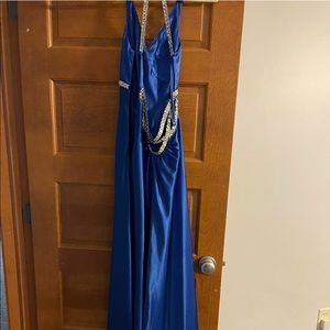 Beautiful blue to the floor dress. Always has been in a dry cleaning bag. Only used once.