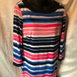 33.5 inch’s long stripped dress. Sleeves are 17inch’s long