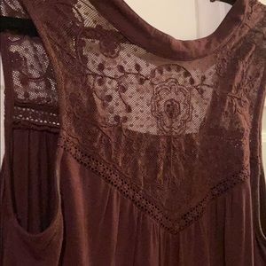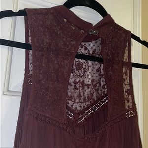 No sleeve maroon dress with mesh top