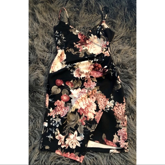 Flower strap dress , asymmetrical front side