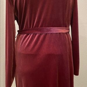 Long sleeve velvet dress,v-neck,belt.stretchy color mauve
