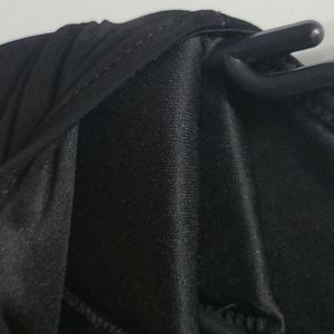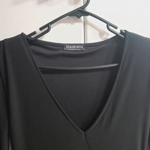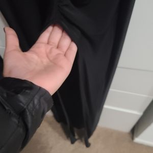 Black long sleeve, high slit dress, padded shoulders, very sexy