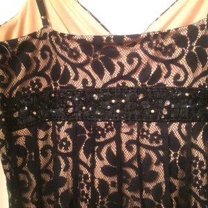 MixIt Black Lace over Nude Lining Dress Beaded under bust underarm zipper, Size 6