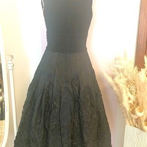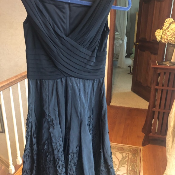 Formal, dark gray dress by Adrainna Papel. Beautiful embroidered detail in the skirt. Off shoulder style.