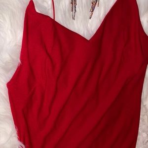 Red skinny strap knee length dress. Dress has an inner lining layer which is nice to avoid being see through. Very nice can be worn to any special occasions. *Earrings are not included with listed item/Bundle and Save*