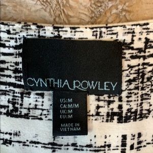 Cynthia Rowley black and white pattern rayon spandex blend size Medium. This dress is in great condition and I believe it’s been worn two times. I bought it for a wedding party it is also perfect for work with a sweater or blazer. Material is stretchy, lightweight, super comfortable and hides most flaws.