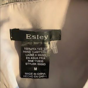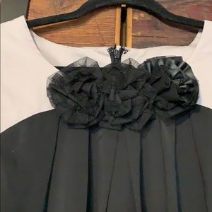 Esley dress 100% polyester size Medium. Dress is fully lined, back zipper with tulle like rosette embellishments on front. This is a cute go out to dinner date dress. Dress is in good condition and worn once.